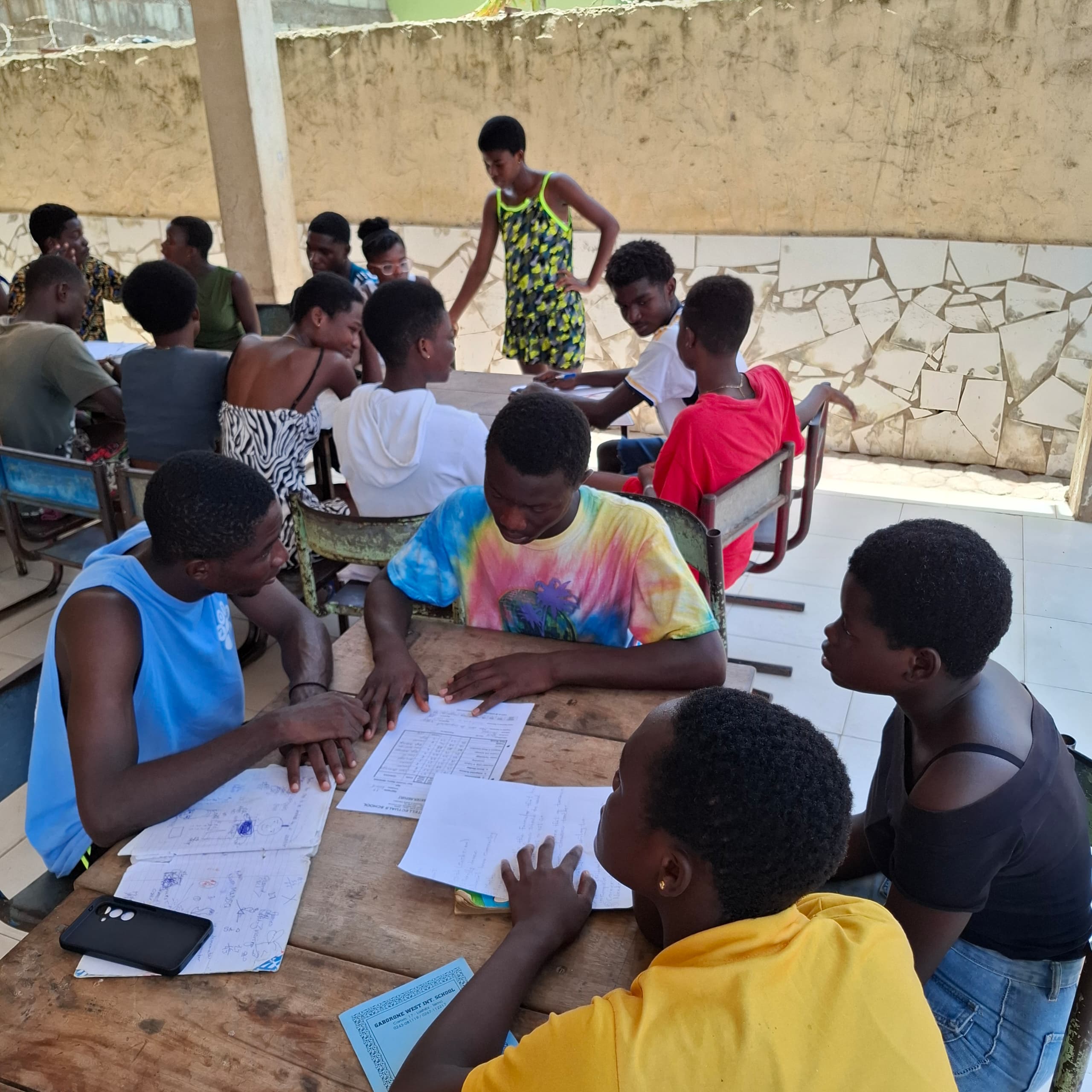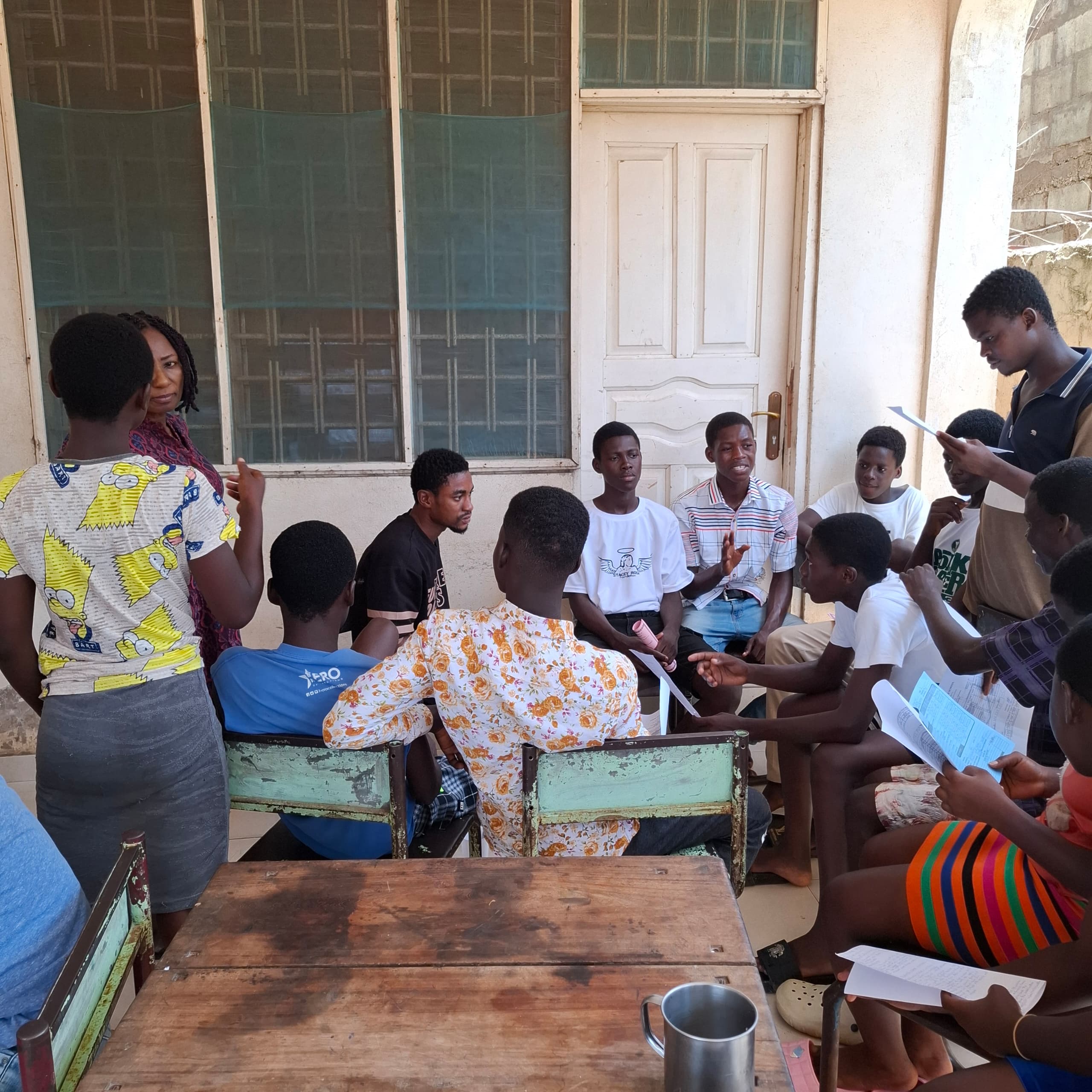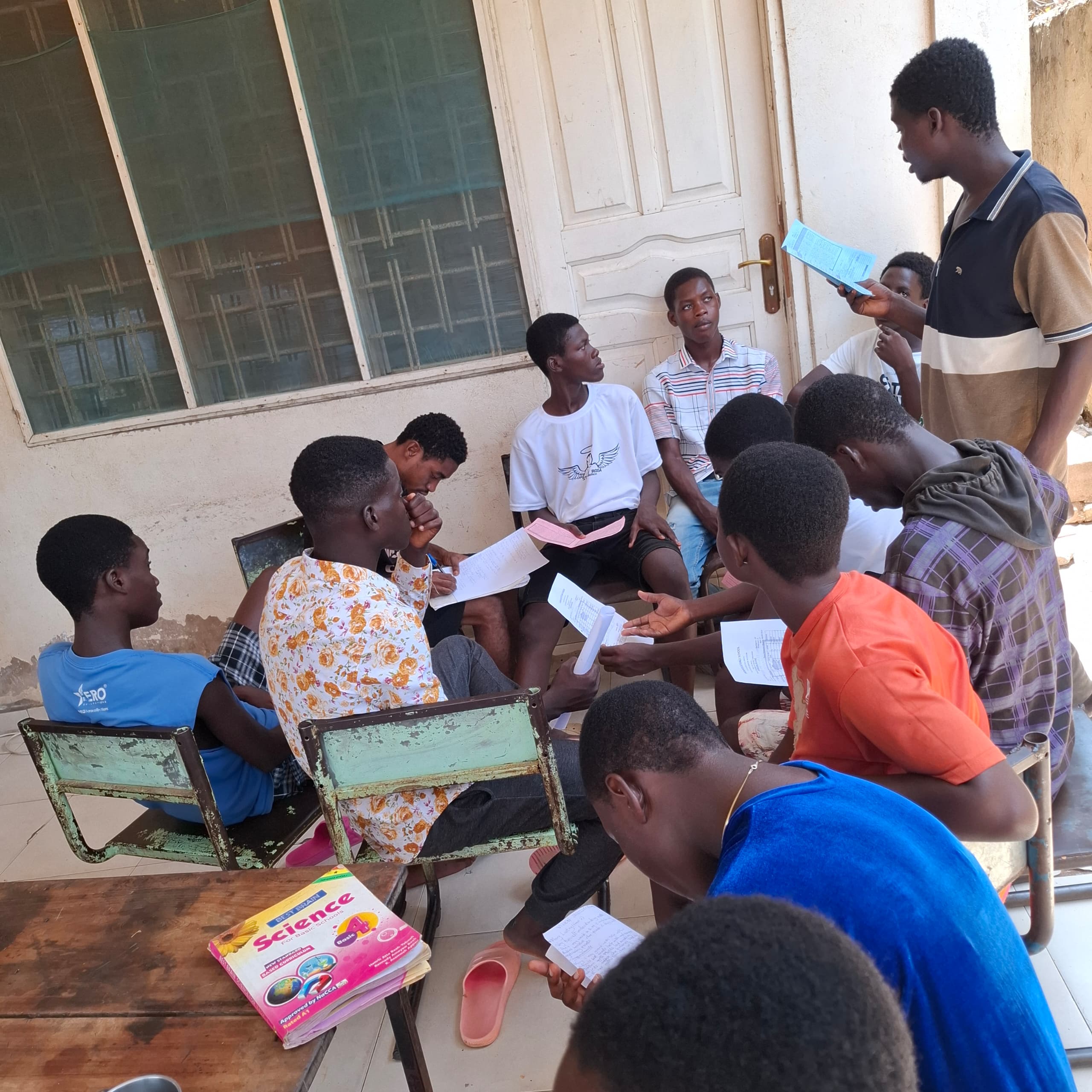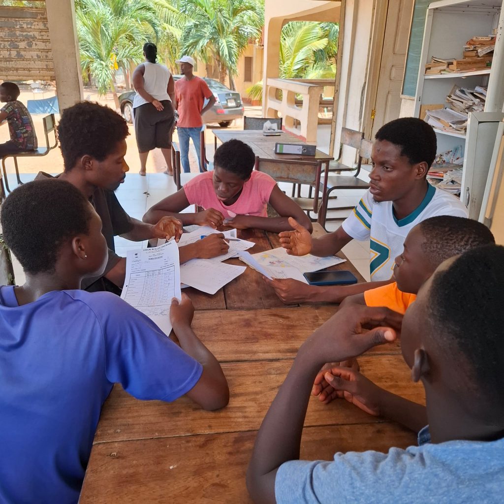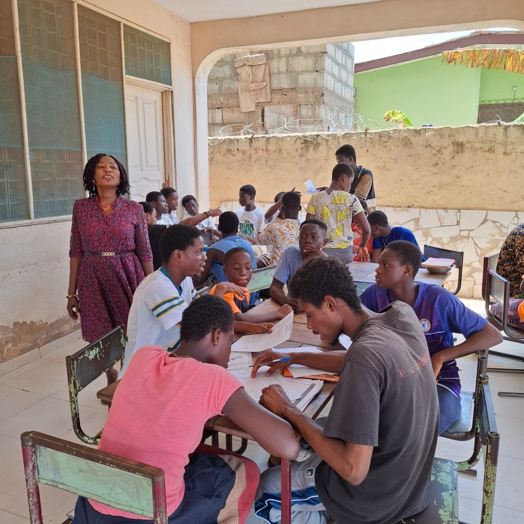 Unsere Kinder nehmen regelmäßig an sogenannten „Brainstorming-Runden“ teil. Dabei setzen sie sich bei uns im Cottage in Gruppen zusammen und beschäftigen sich intensiv mit wichtigen Themen: Finanzen, Umwelt, Gesundheit, Bildung, Marketing, die wirtschaftliche Lage in Ghana und ganz Afrika, aber auch die Rolle Afrikas in der globalen Welt.
